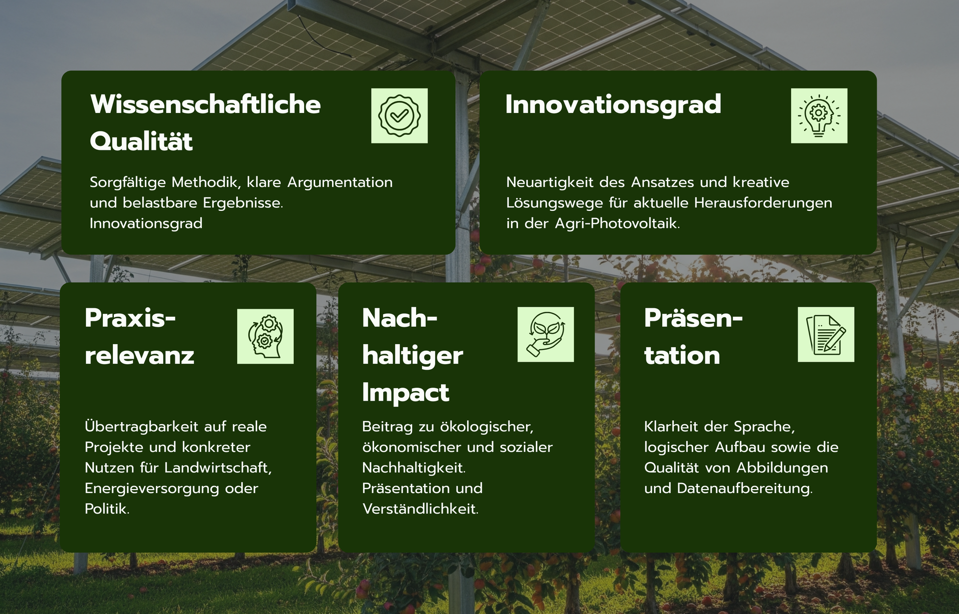 Mit deiner Abschlussarbeit kannst du zeigen, wie Agri-Photovoltaik Landwirtschaft und Energiewende verbindet – und dabei bis zu 5.000 € gewinnen.